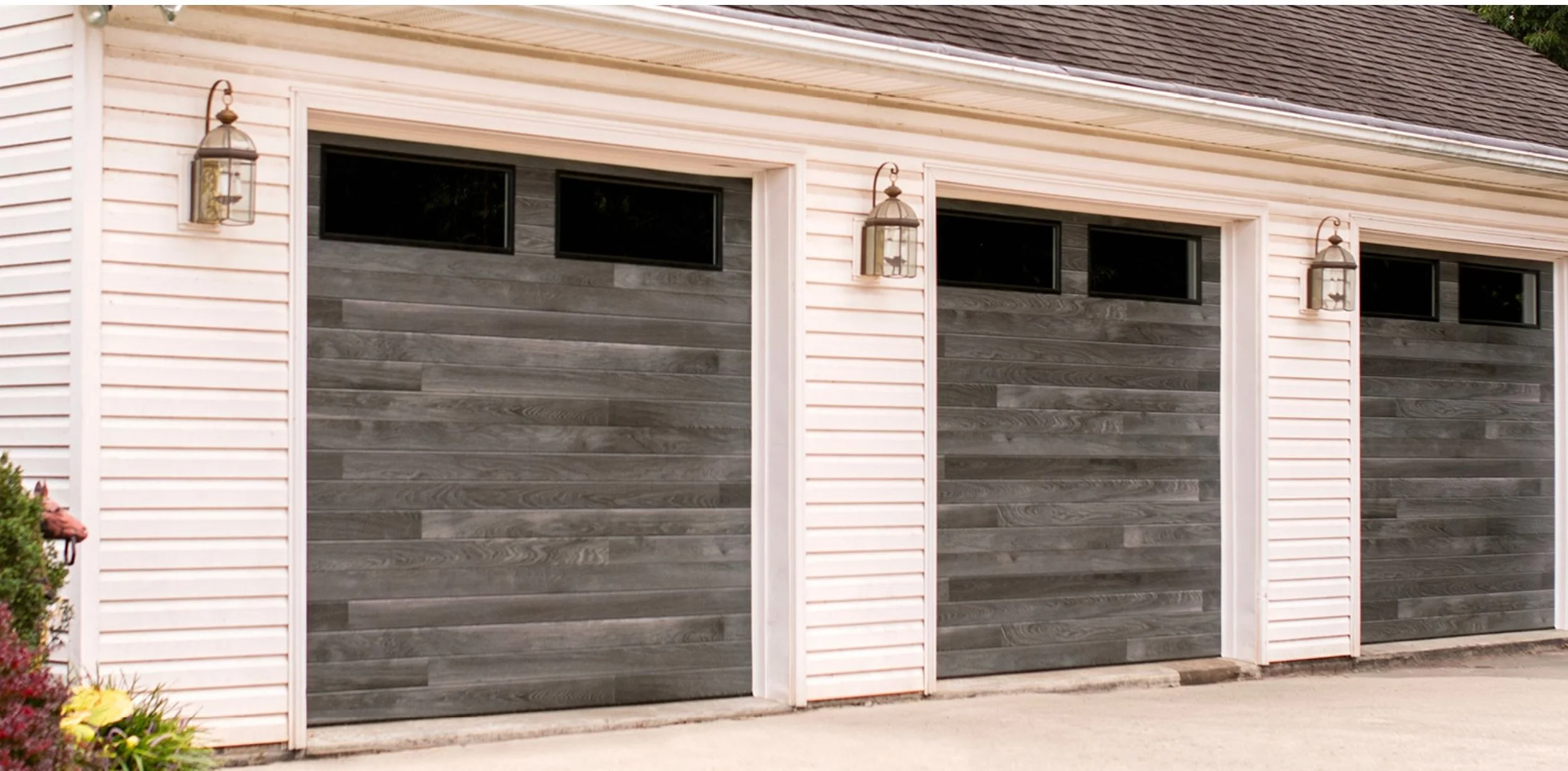 Traditional garage doors are the classic style you’ll see on most homes. They’re a great option if you want a reliable, clean look with simple design choices and colors.
